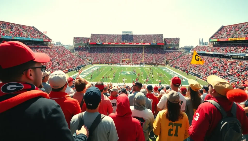 College football game between Georgia and Georgia Tech in a vibrant stadium.